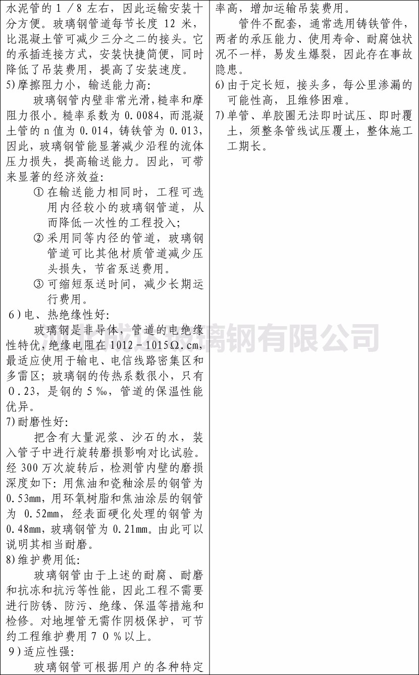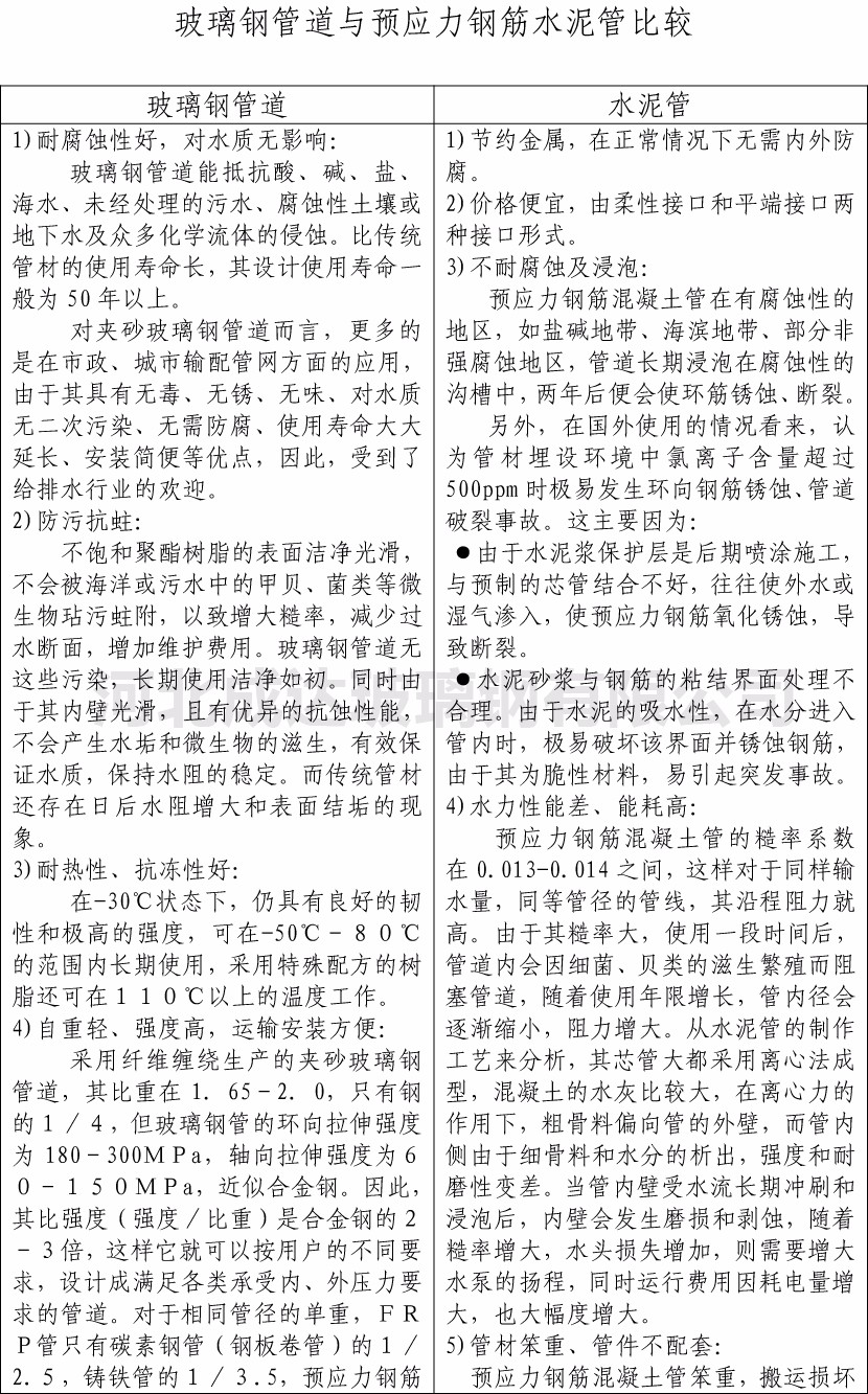 玻璃鋼管道與水泥管比較